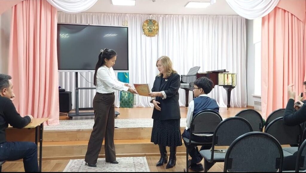 Өнер мектебінің ұжымы ұстаз Ғабдуллина Айгүл Қайыржанқызын және концертмейстер Мұхаметали Майхановты шығармашылық еңбектері мен шәкірт тәрбиесіндегі үлестері үшін алғыс хатпен марапаттады.